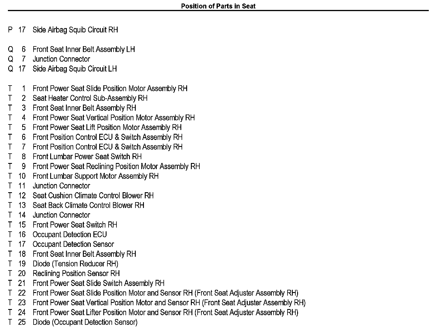 Position Of Parts In Seat: