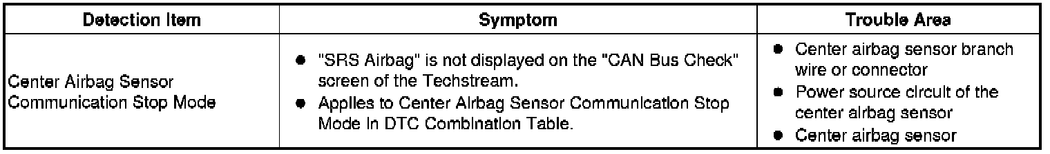 NETWORKING: CAN COMMUNICATION SYSTEM: Center Airbag Sensor Communication Stop Mode