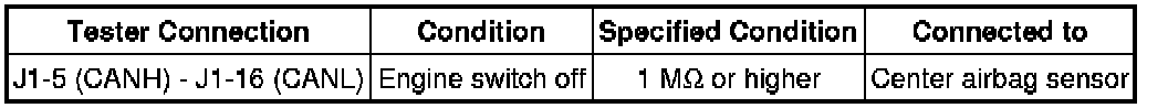 5. CHECK FOR SHORT IN CAN BUS WIRES (CENTER AIRBAG SENSOR BRANCH WIRE)