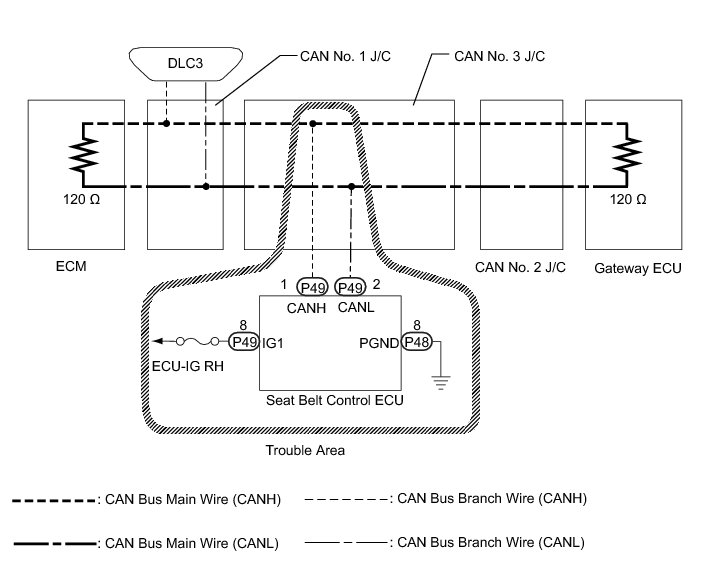 NG -- REPAIR OR REPLACE SEAT BELT CONTROL ECU BRANCH WIRE OR CONNECTOR (CANH, CANL)