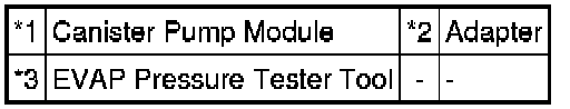 (b) Connect the EVAP pressure tester tool to the canister pump module with the adapter.