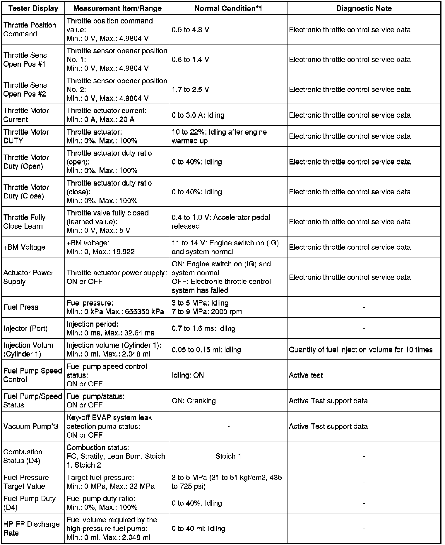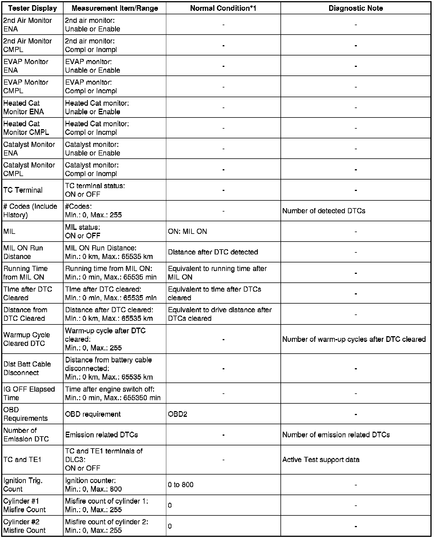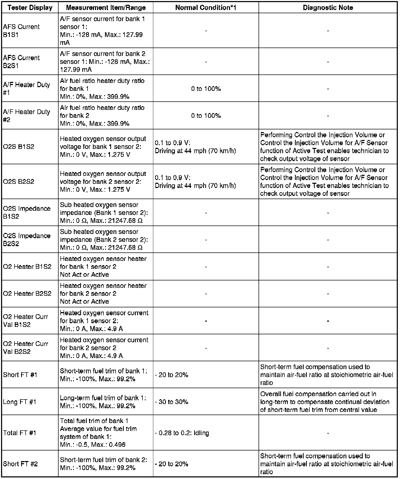 * *1: If no idling conditions are specified, the shift lever should be in N or P and the A/C switch and all accessory switches should be OFF.