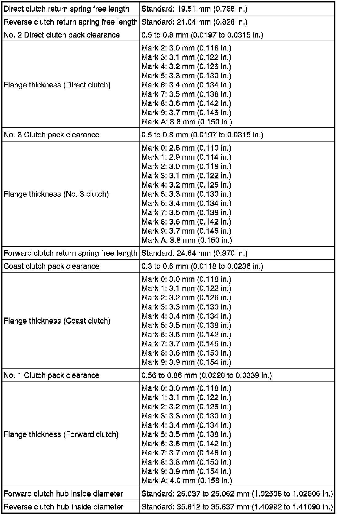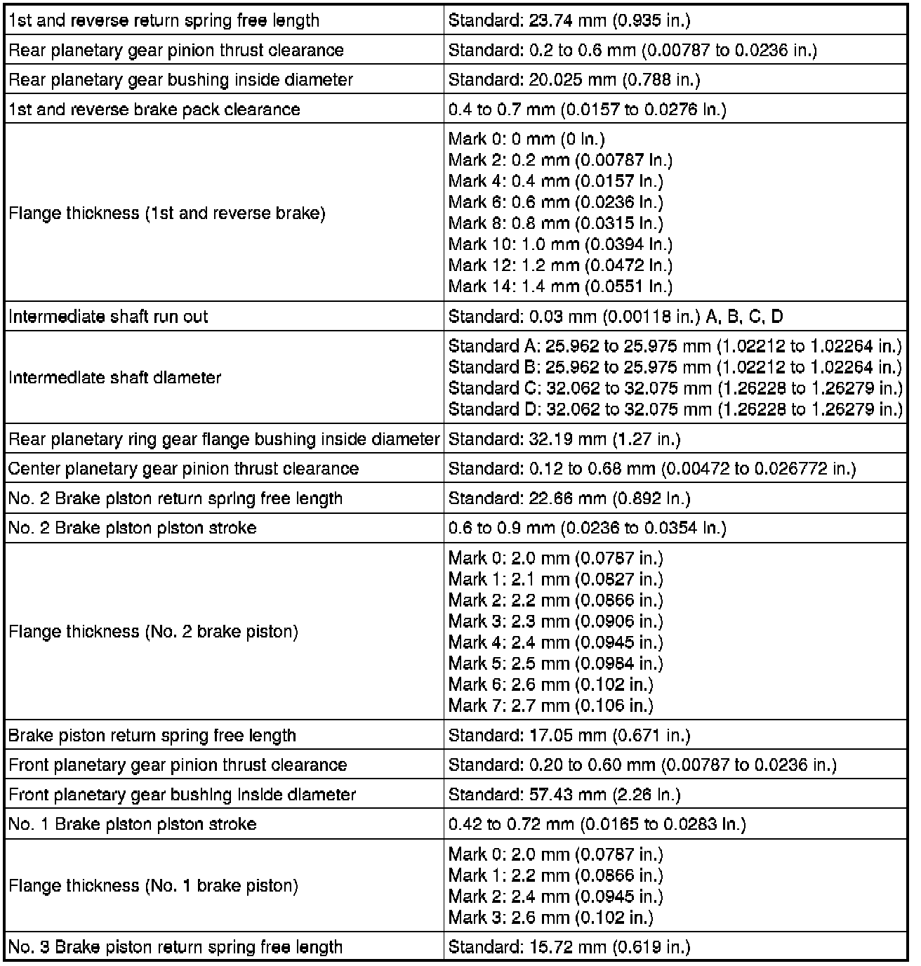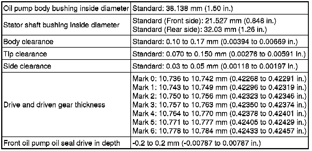 SPECIFICATIONS: A760E AUTOMATIC TRANSMISSION / TRANSAXLE: SERVICE DATA