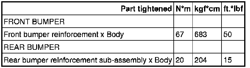 SPECIFICATIONS: EXTERIOR PANELS / TRIM: TORQUE SPECIFICATIONS