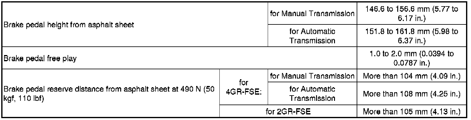 SPECIFICATIONS: BRAKE SYSTEM (OTHER): SERVICE DATA