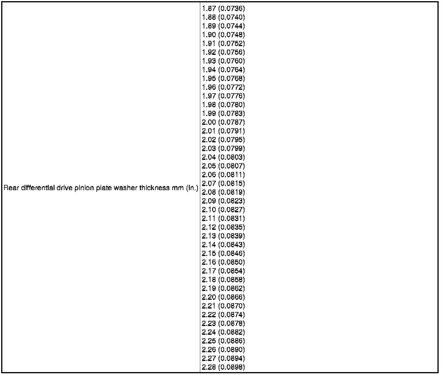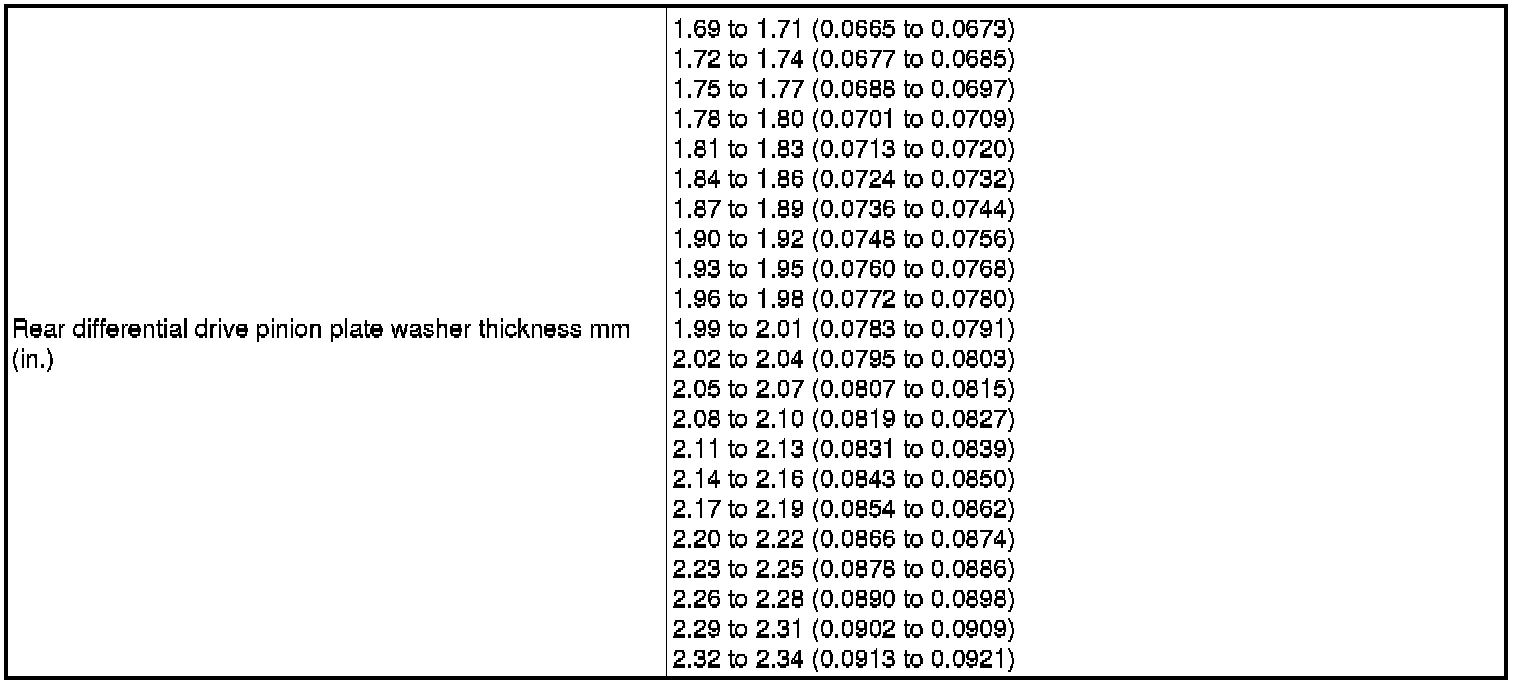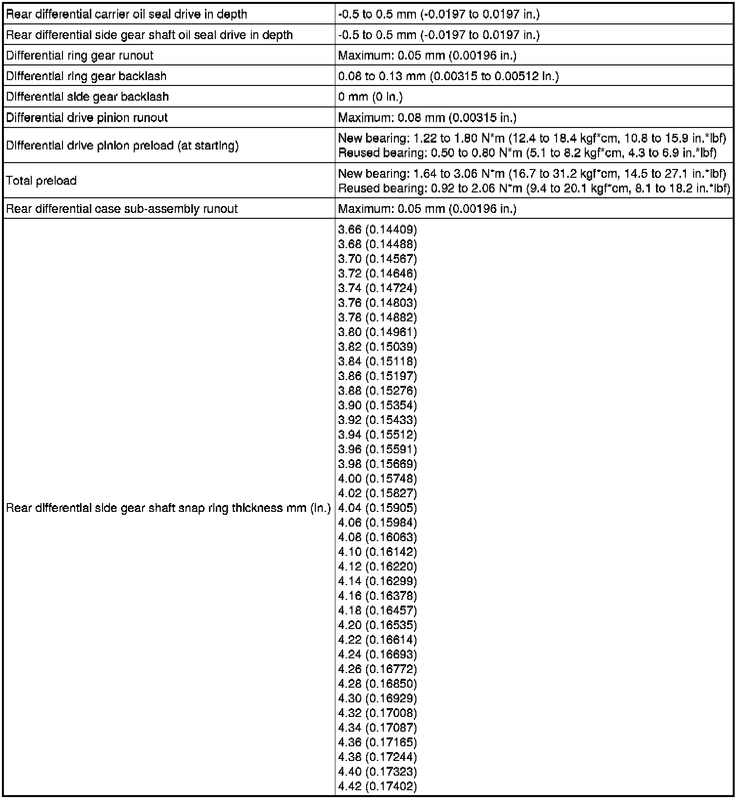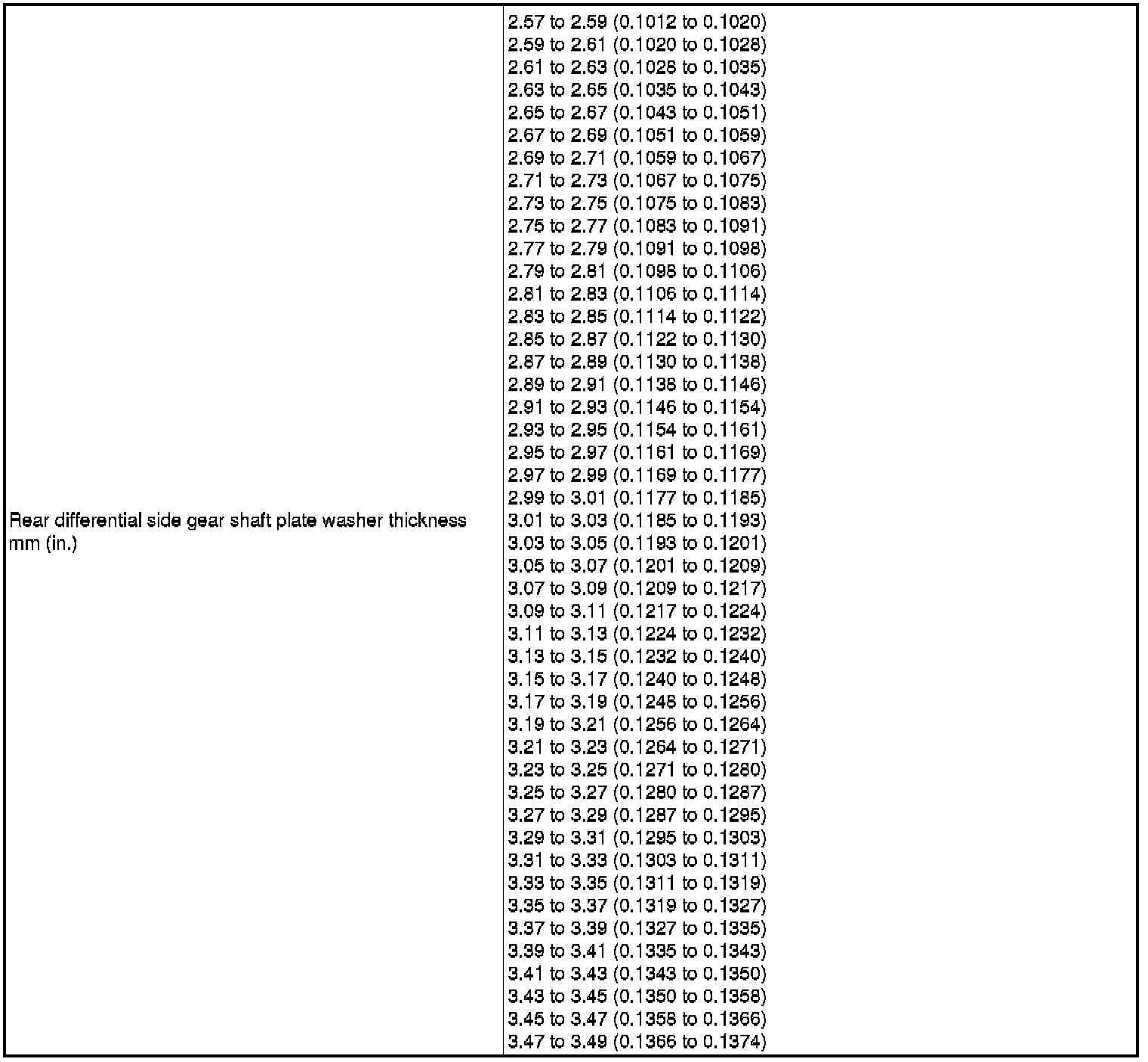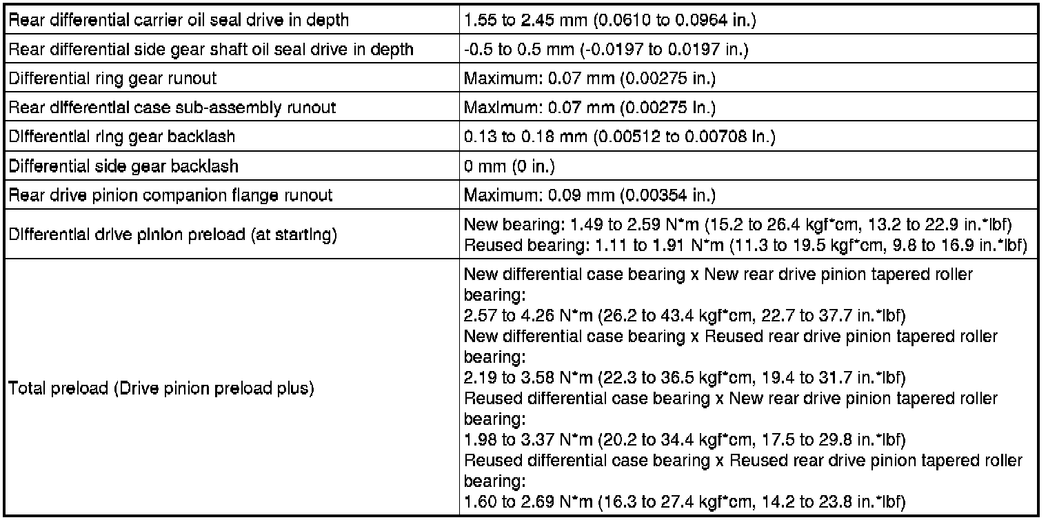 SPECIFICATIONS: AXLE AND DIFFERENTIAL: SERVICE DATA