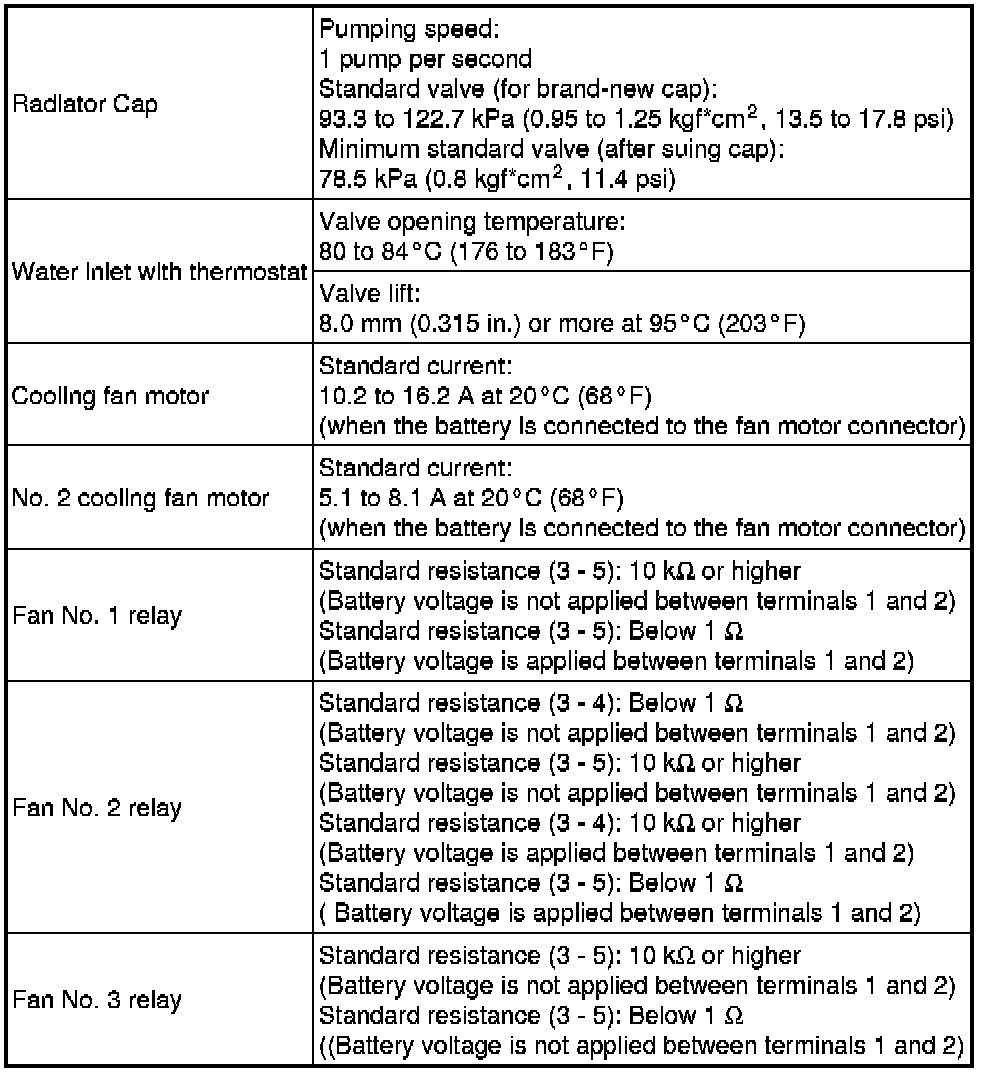 SPECIFICATIONS: 2GR-FSE COOLING: SERVICE DATA