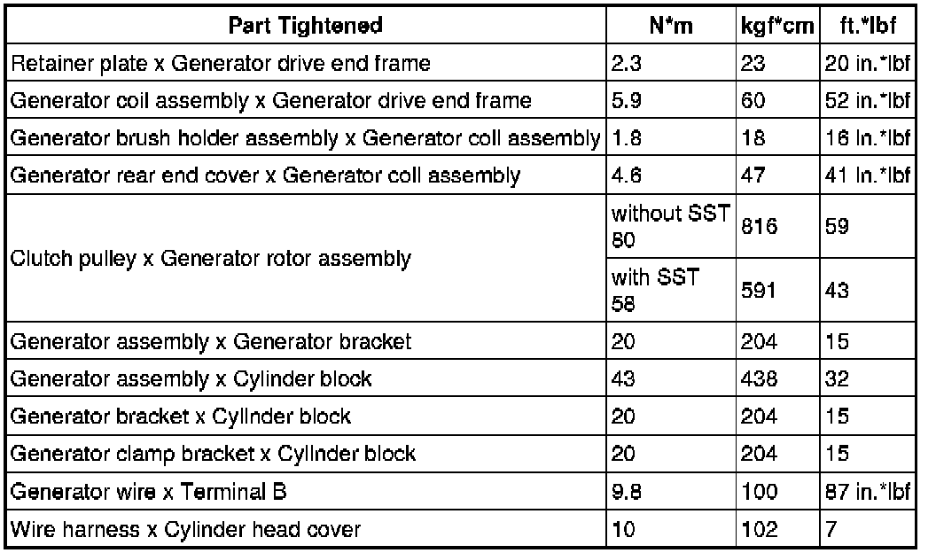 SPECIFICATIONS: 2GR-FSE BATTERY / CHARGING: TORQUE SPECIFICATIONS