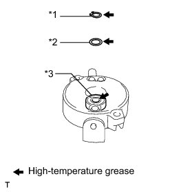 (a) Apply high-temperature grease to the plate washer, new snap ring and bearing, as shown in the illustration.
