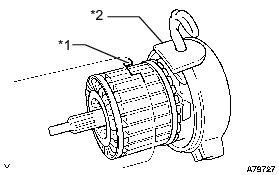 (a) Align the rubber of the end frame with the cutout of the starter yoke.