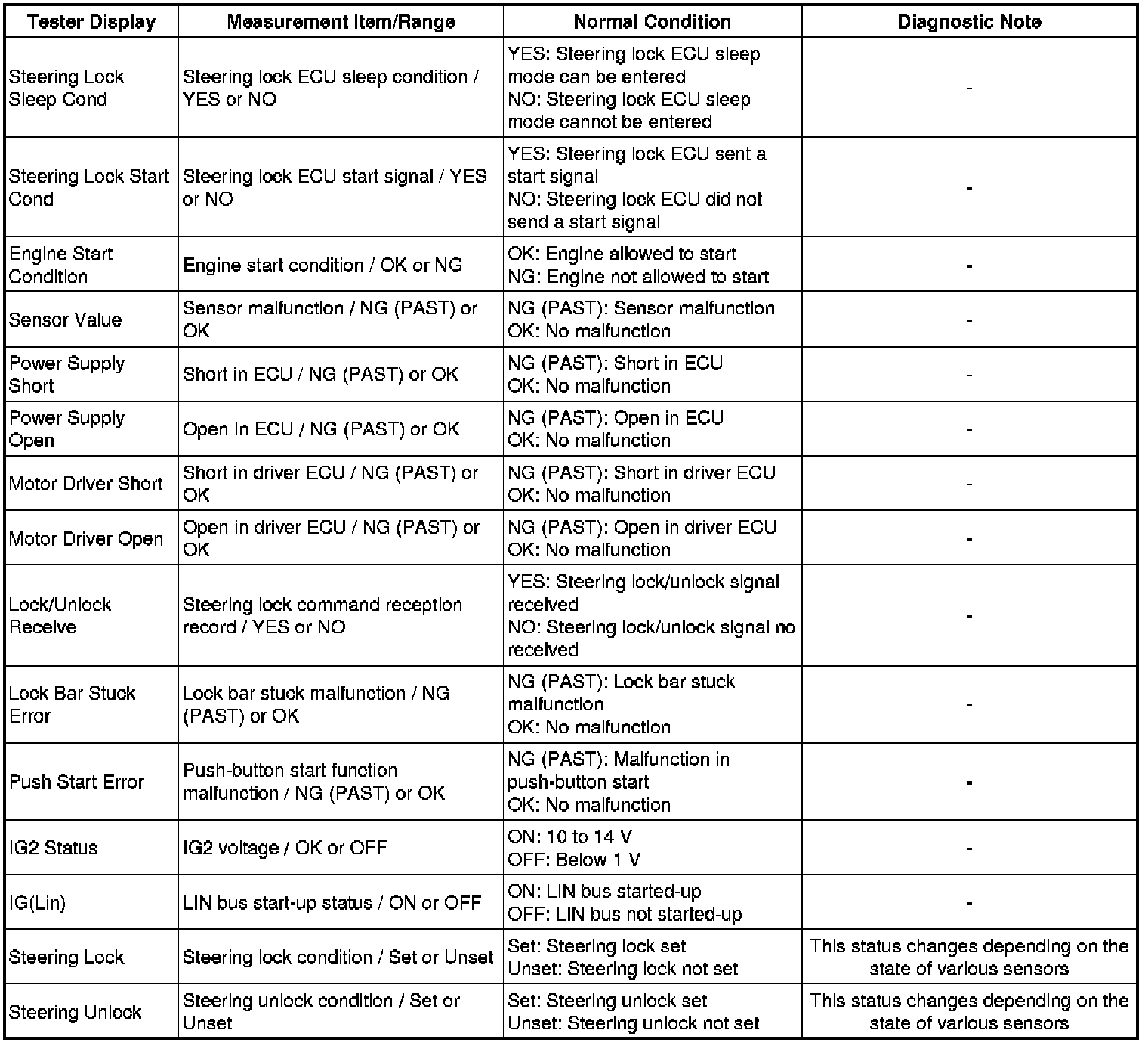 STEERING COLUMN: STEERING LOCK SYSTEM: DATA LIST / ACTIVE TEST