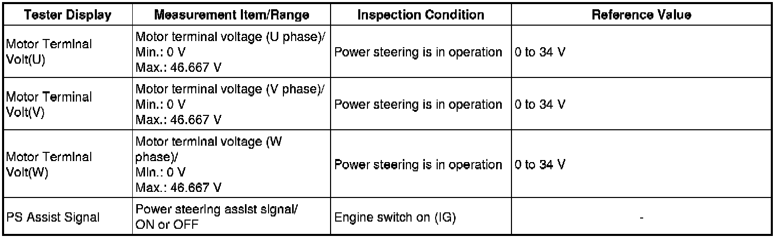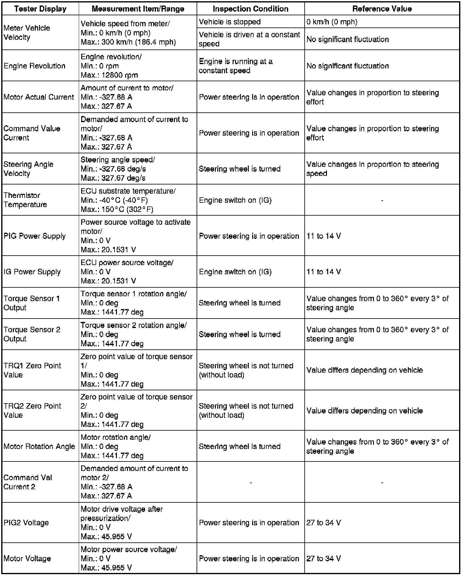 POWER ASSIST SYSTEMS: POWER STEERING SYSTEM: FREEZE FRAME DATA