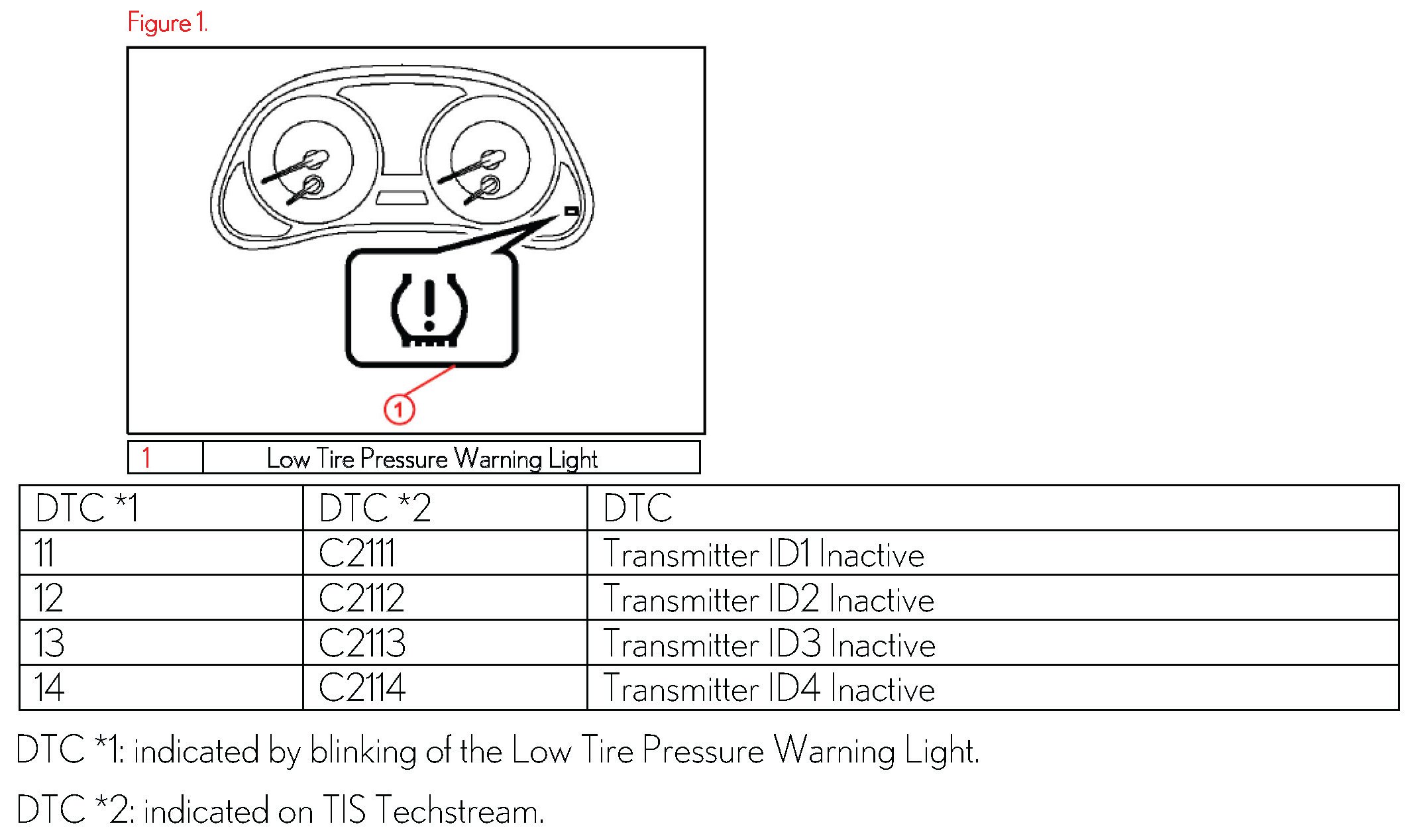 - The DTCs will automatically clear when the tire pressure warning valves/sensors are activated.