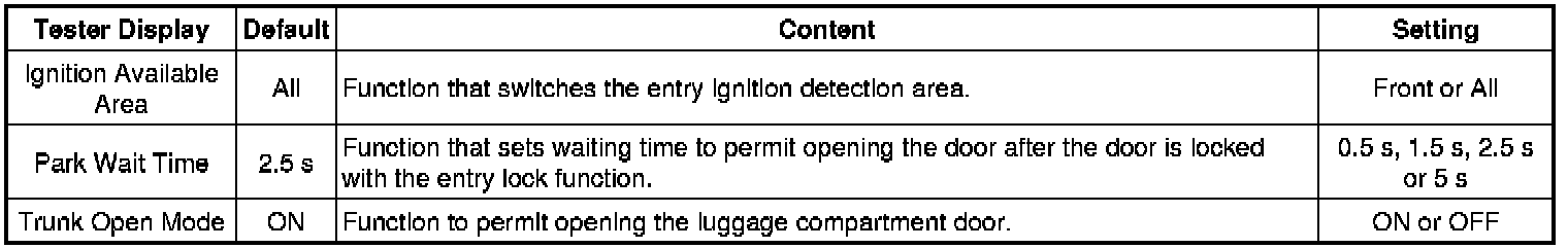 6. ENTRY UNLOCK MODE SWITCHING (SMART ACCESS SYSTEM WITH PUSH-BUTTON START (for Entry Function))