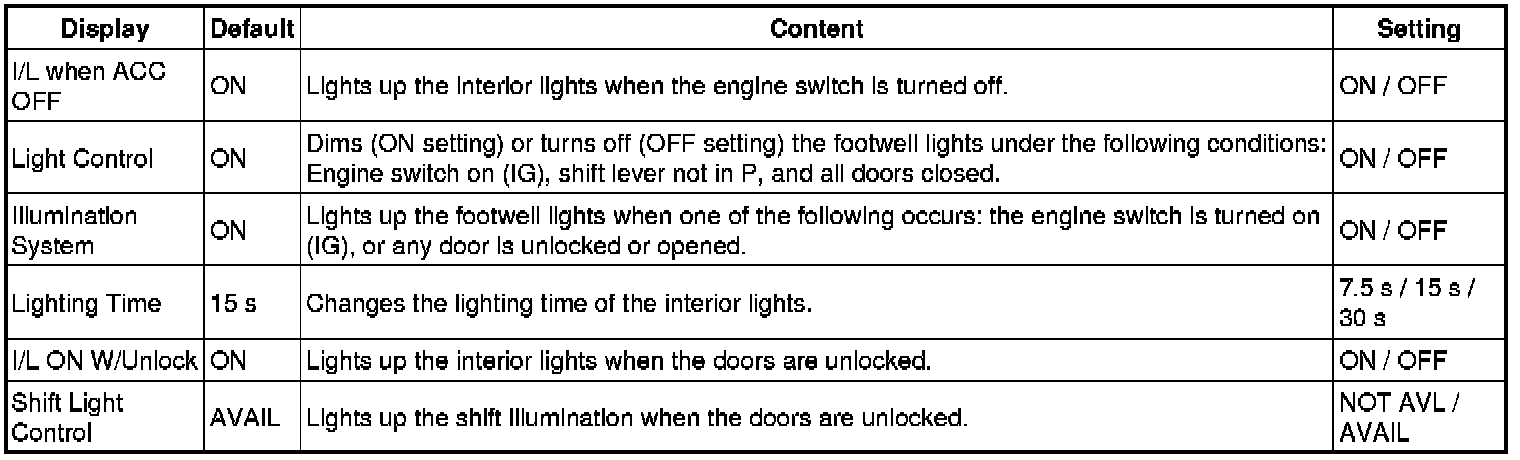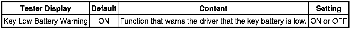 * When either the cable connected to the battery terminal or the combination meter assembly connector is disconnected, these buzzers are set on (enabled).