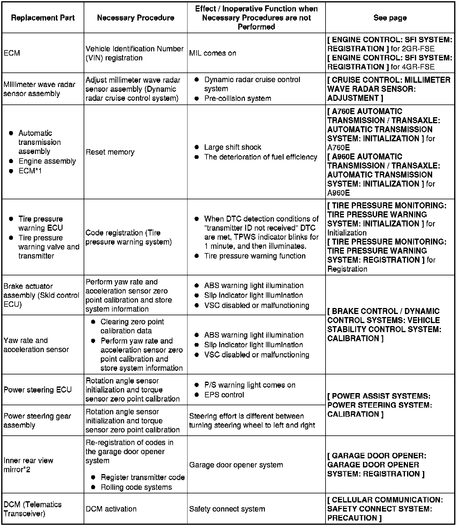 2. PROCEDURES NECESSARY WHEN ECU OR OTHER PARTS ARE REPLACED
