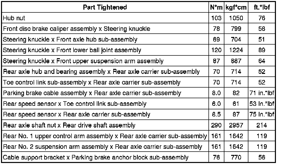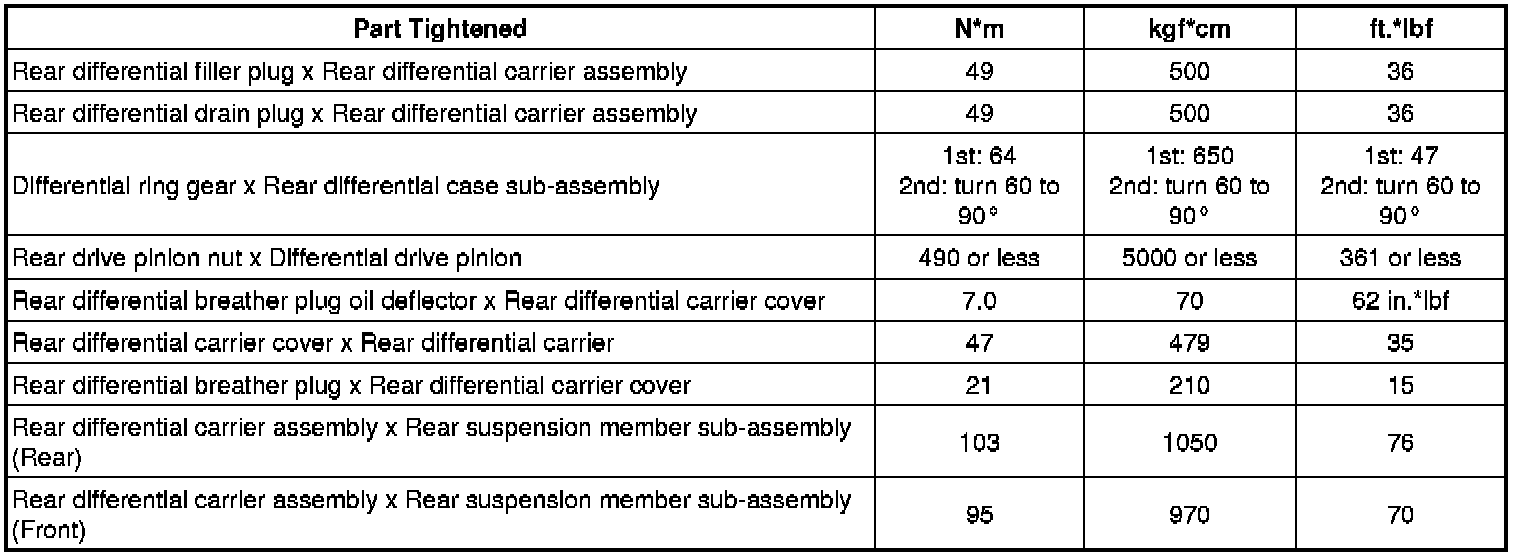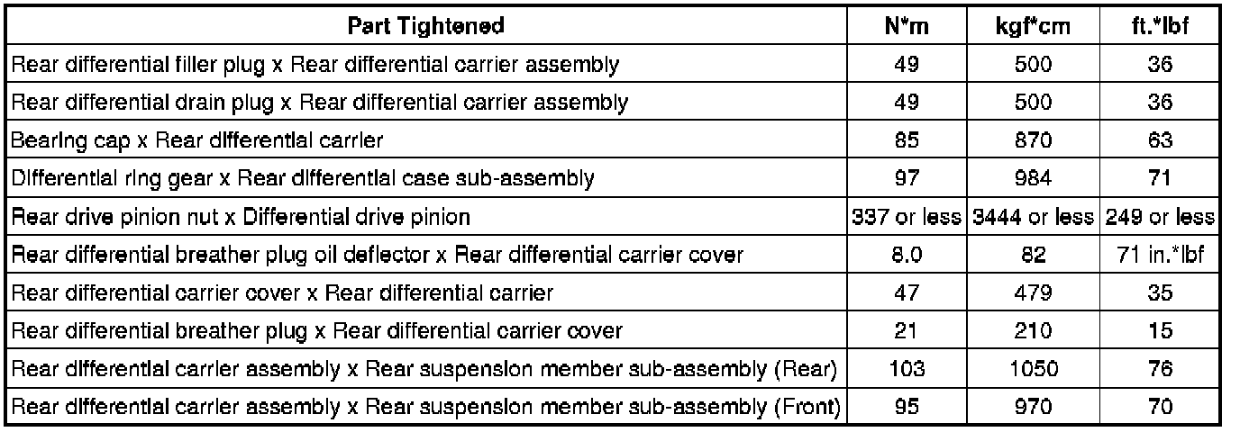 SPECIFICATIONS: AXLE AND DIFFERENTIAL: TORQUE SPECIFICATIONS