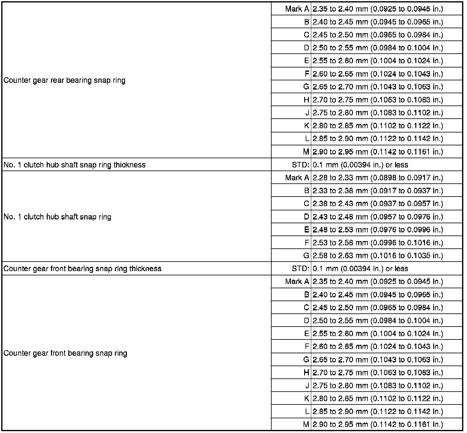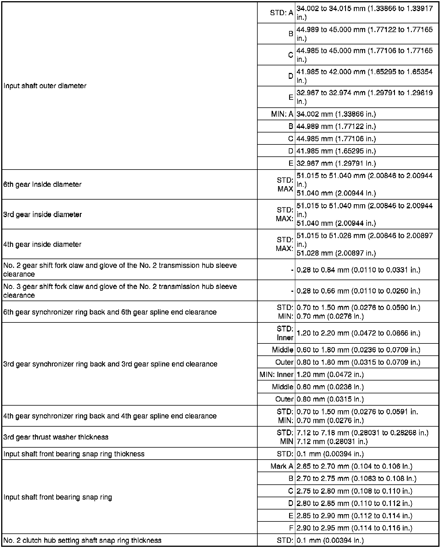 SPECIFICATIONS: RA62 MANUAL TRANSMISSION / TRANSAXLE: SERVICE DATA