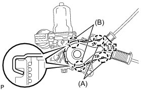 (c) Using a water pump pliers, engage the 2 claws (B) and install a new front door power window regulator base plate.