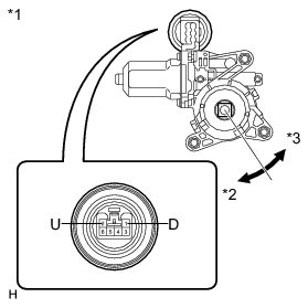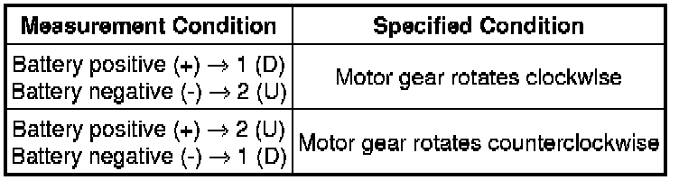 (2) If the result is not as specified, replace the power window regulator motor assembly RH.