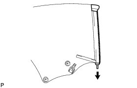 (c) Pull on the new quarter window front weatherstrip as shown in the illustration to pull it into the grooves of the quarter window front weatherstrip retainer.