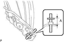 (a) Using a 4 mm hexagon wrench, adjust the stud bolt on the lower part of the quarter window regulator assembly to the specified range.