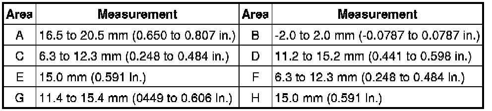 (f) Check that the clearance measurements of areas A through H are within each standard range.