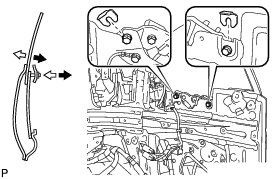 (d) Apply adhesive between the quarter window front weatherstrip and quarter window front weatherstrip retainer.