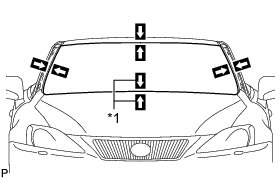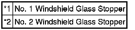 * There are No. 1 and No. 2 stoppers on the windshield glass as shown in the illustration. Be careful not to damage the windshield glass when cutting off the adhesive.