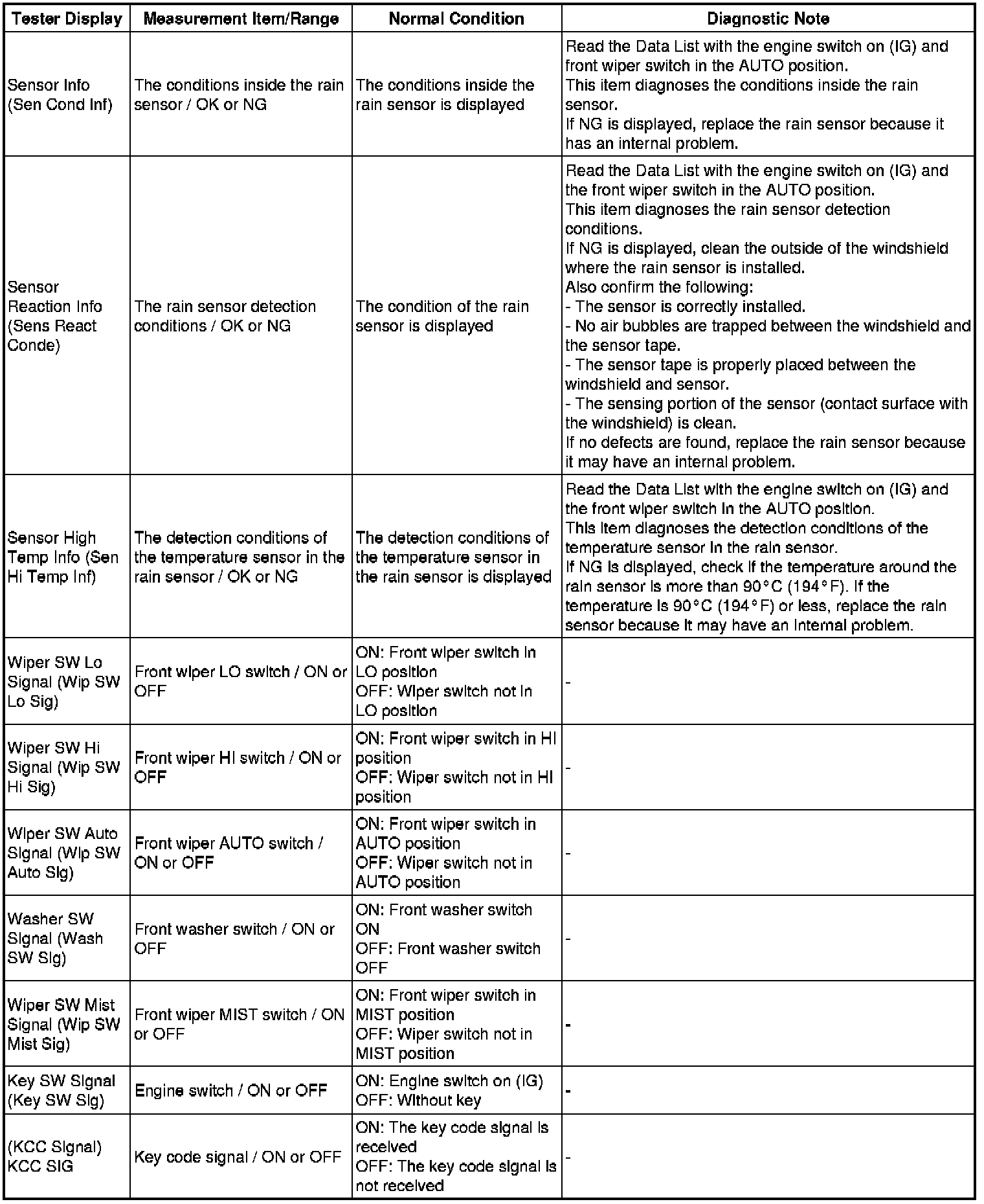 Using the Techstream to read the Data List allows the values or states of switches, sensors, actuators and other items to be read without removing any parts. This non-intrusive inspection can be very useful because intermittent conditions or signals may be discovered before parts or wiring is disturbed. Reading the Data List information early in troubleshooting is one way to save diagnostic time.