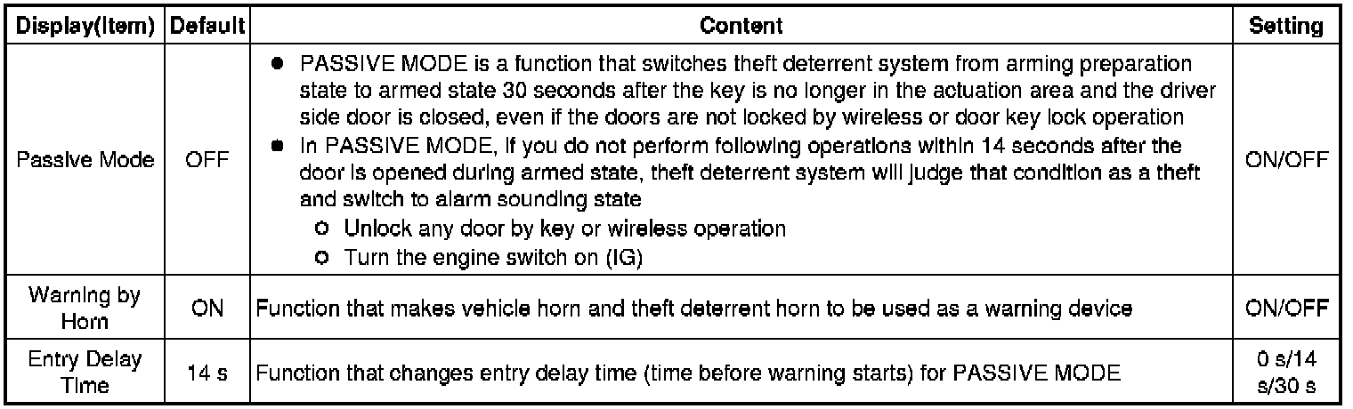 THEFT DETERRENT / KEYLESS ENTRY: THEFT DETERRENT SYSTEM: CUSTOMIZE PARAMETERS