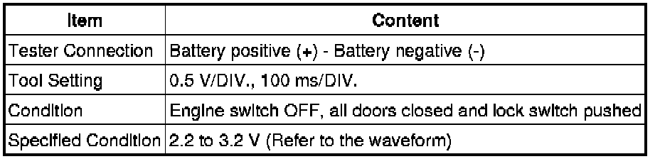 When measuring the battery voltage, while operating the lock switch of a door outside handle assembly, bring the electrical key transmitter within the entry operating range to perform the measurement. For the entry operating range, refer to System Description Removal.