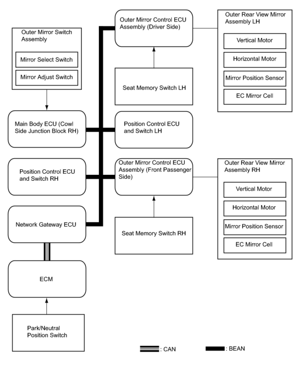 MIRROR (EXT): POWER MIRROR CONTROL SYSTEM: SYSTEM DIAGRAM