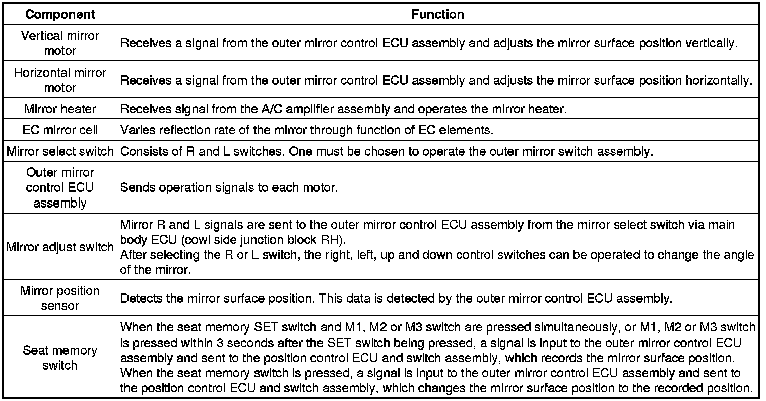 MIRROR (EXT): POWER MIRROR CONTROL SYSTEM: SYSTEM DESCRIPTION