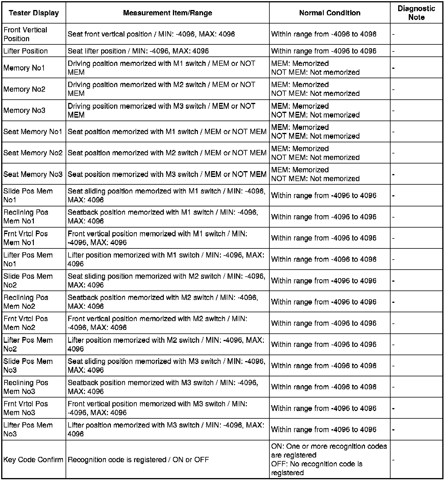 SEAT: FRONT POWER SEAT CONTROL SYSTEM: DATA LIST / ACTIVE TEST
