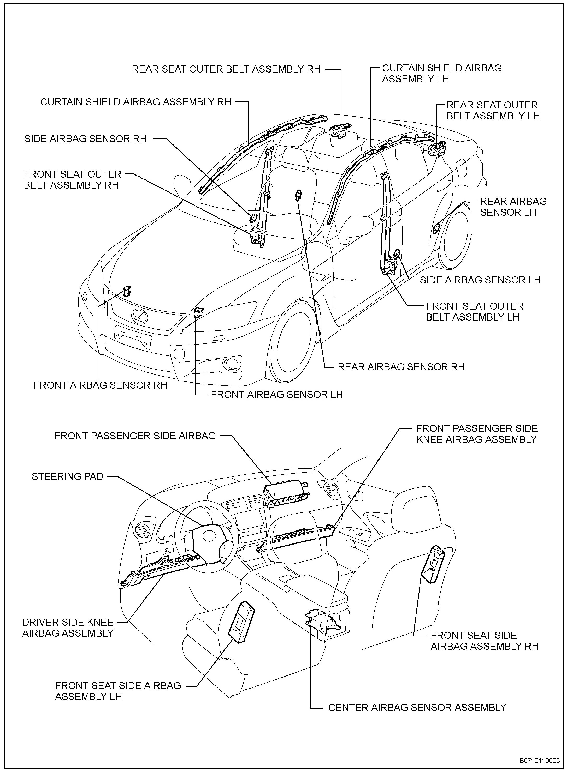 4. Do not allow the front airbag sensors, side airbag sensors, rear side airbag sensors, center airbag sensor or seat position sensor to become heated to high temperatures.