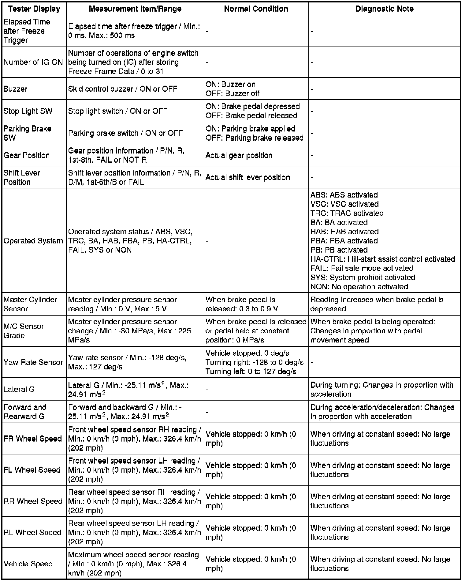 * When the skid control ECU stores data at the time a DTC is detected, no updates will be performed until the data is cleared.