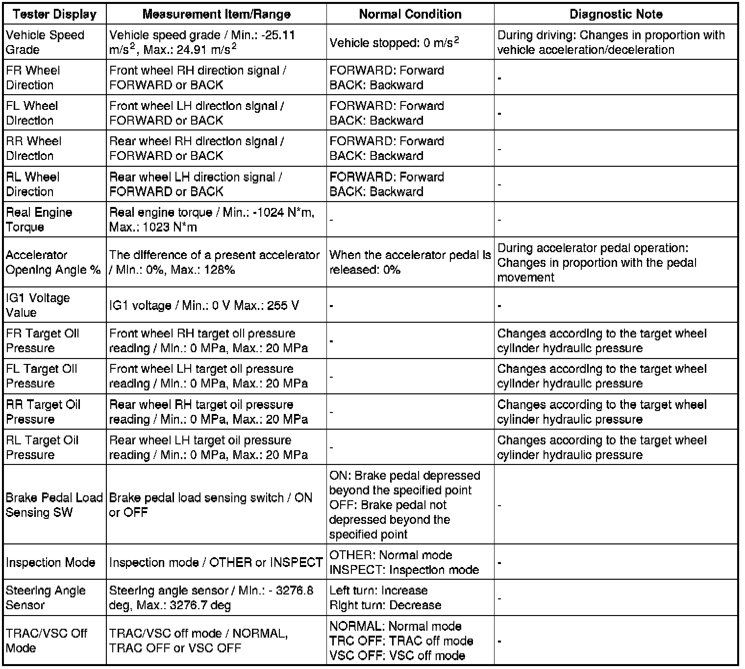 (a) Whenever an ABS DTC is detected, the skid control ECU stores the current vehicle (sensor) state as Freeze Frame Data.