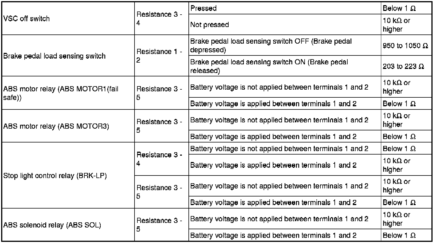SPECIFICATIONS: BRAKE CONTROL / DYNAMIC CONTROL SYSTEMS: SERVICE DATA