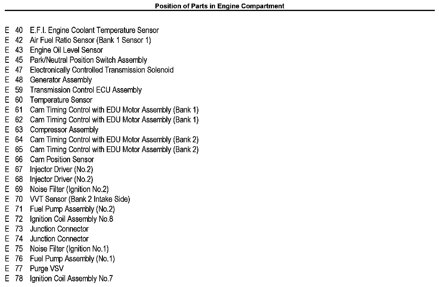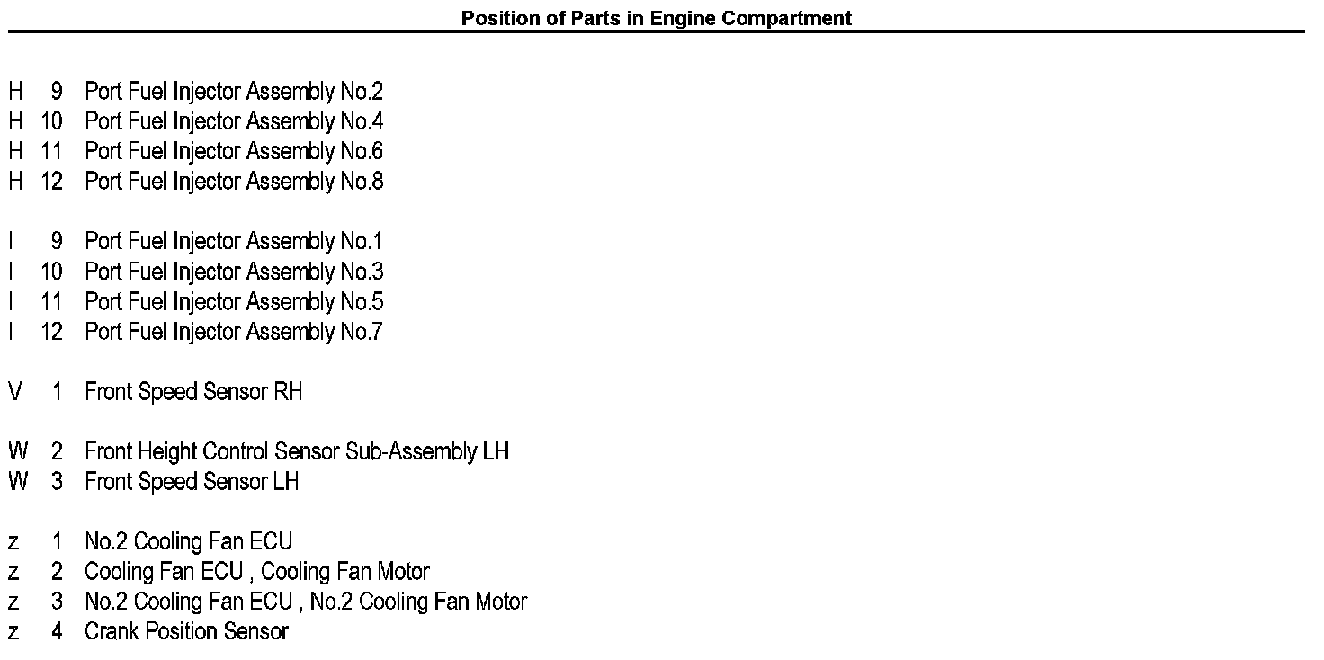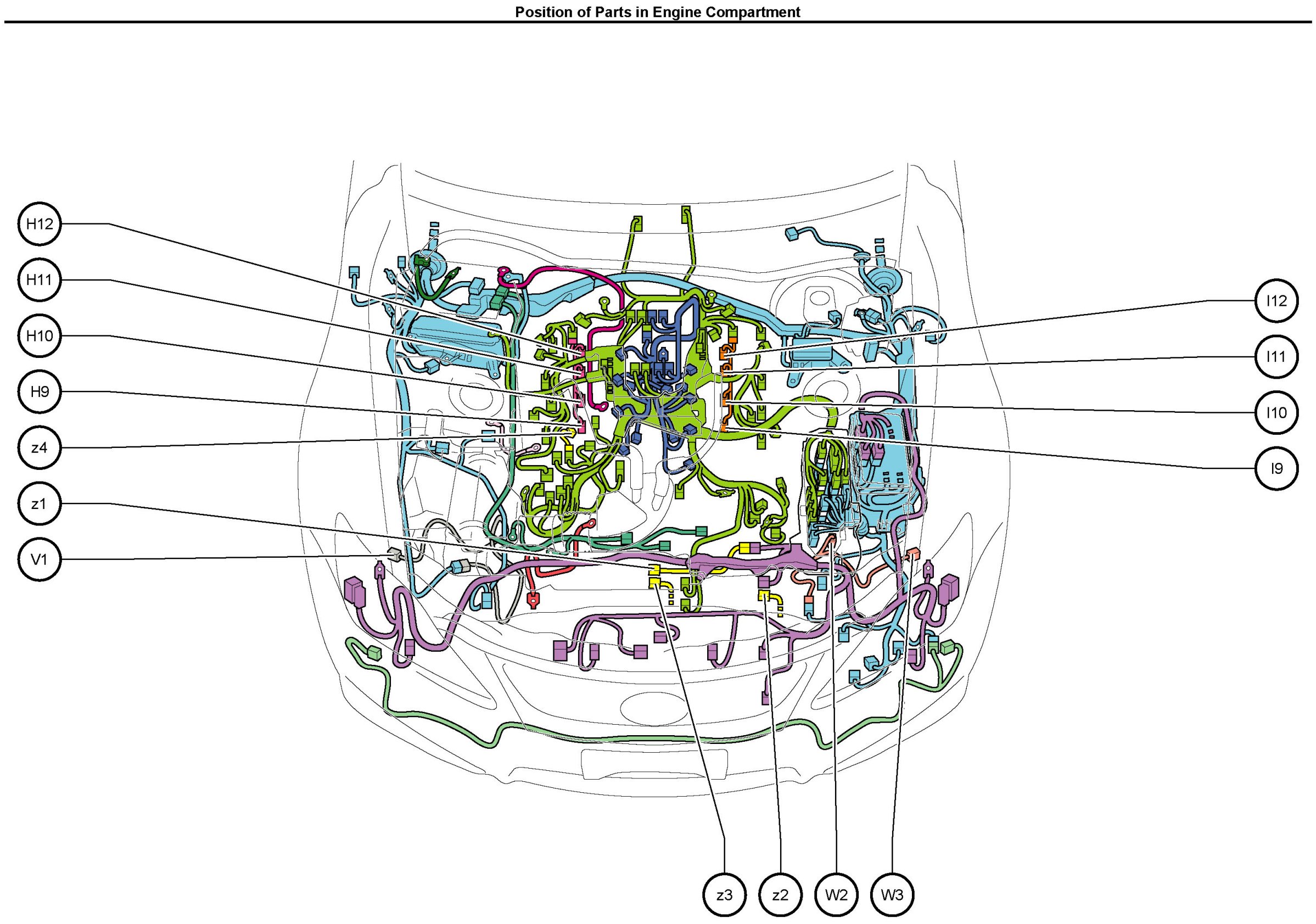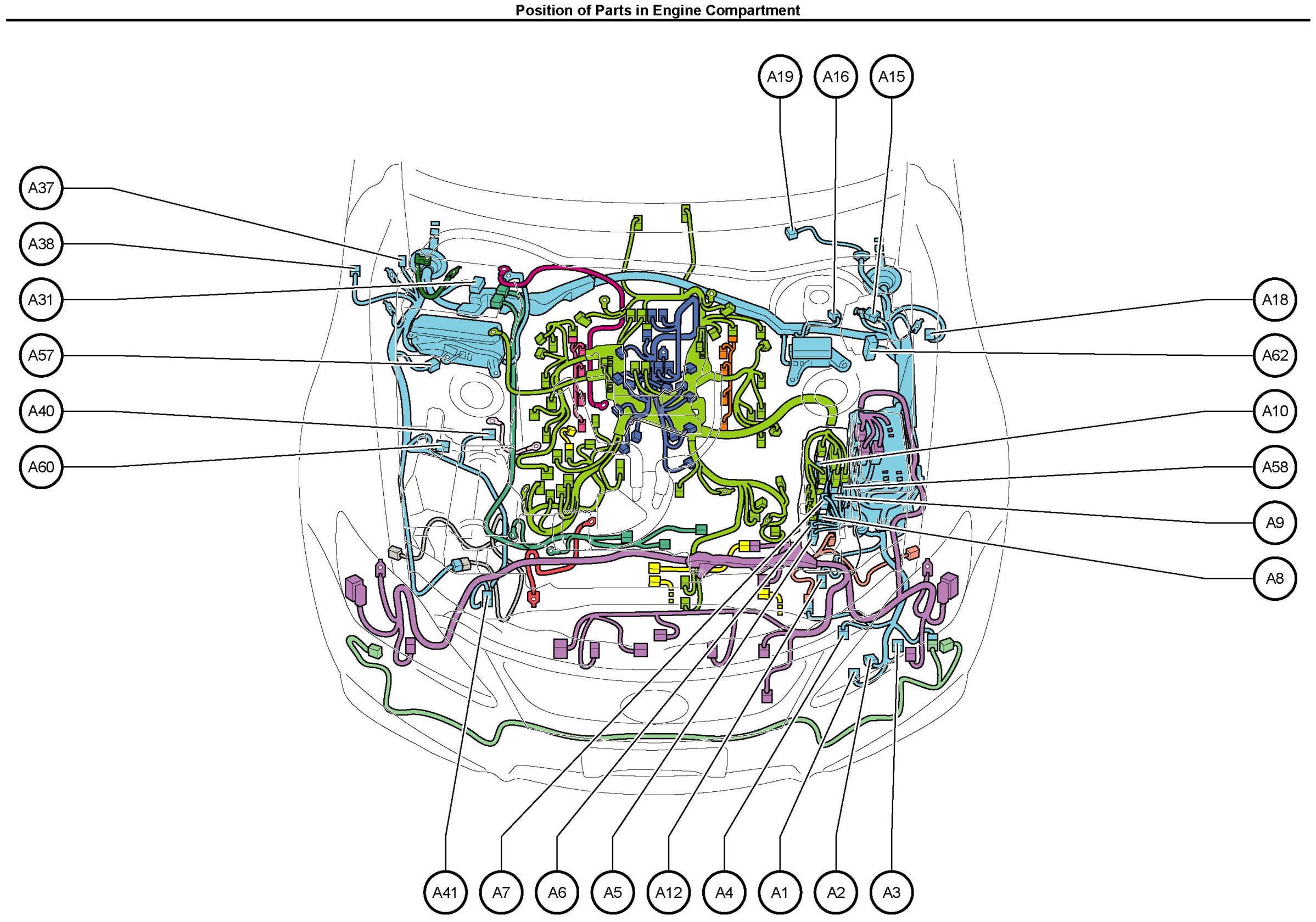 Position of Parts In Engine Compartment