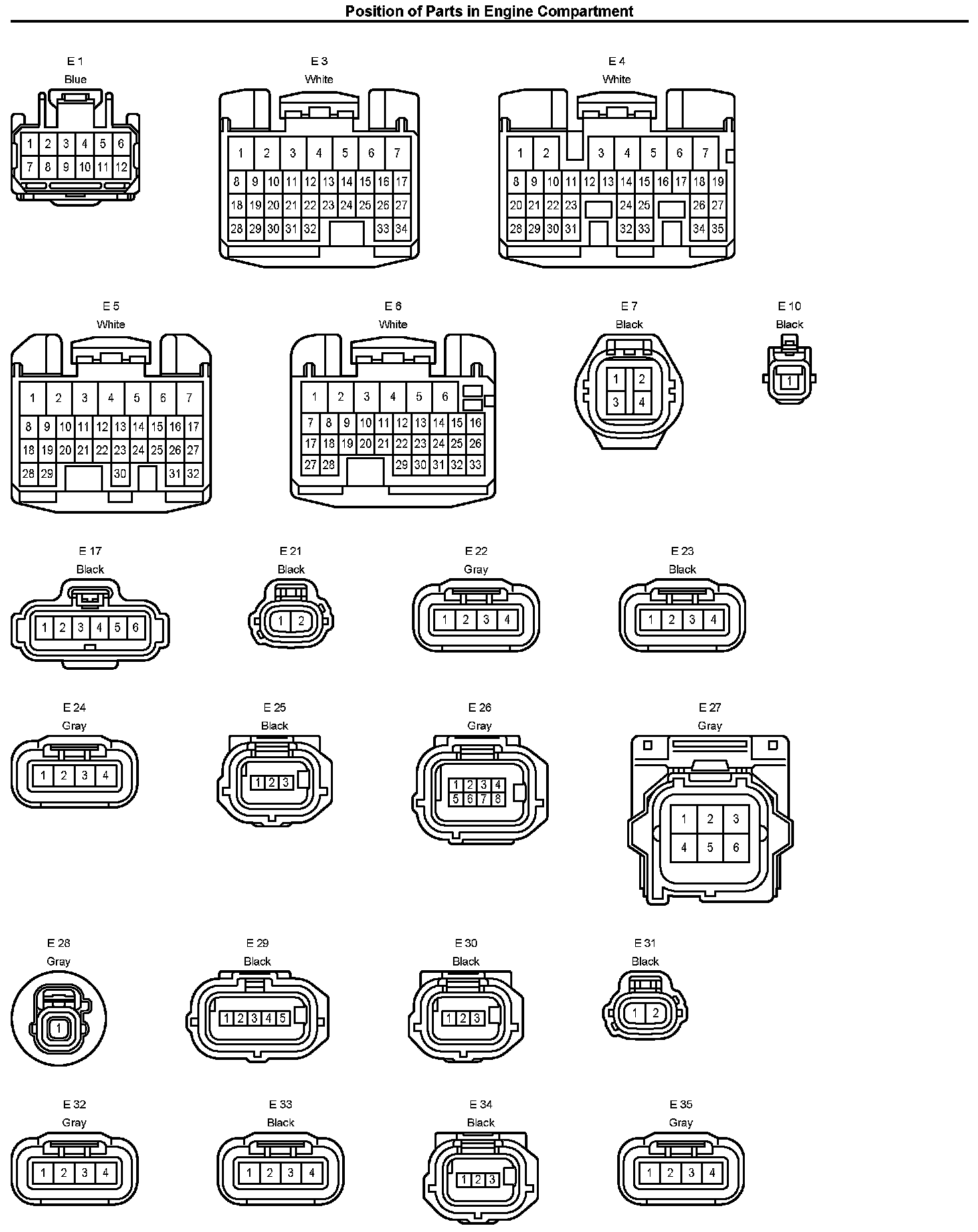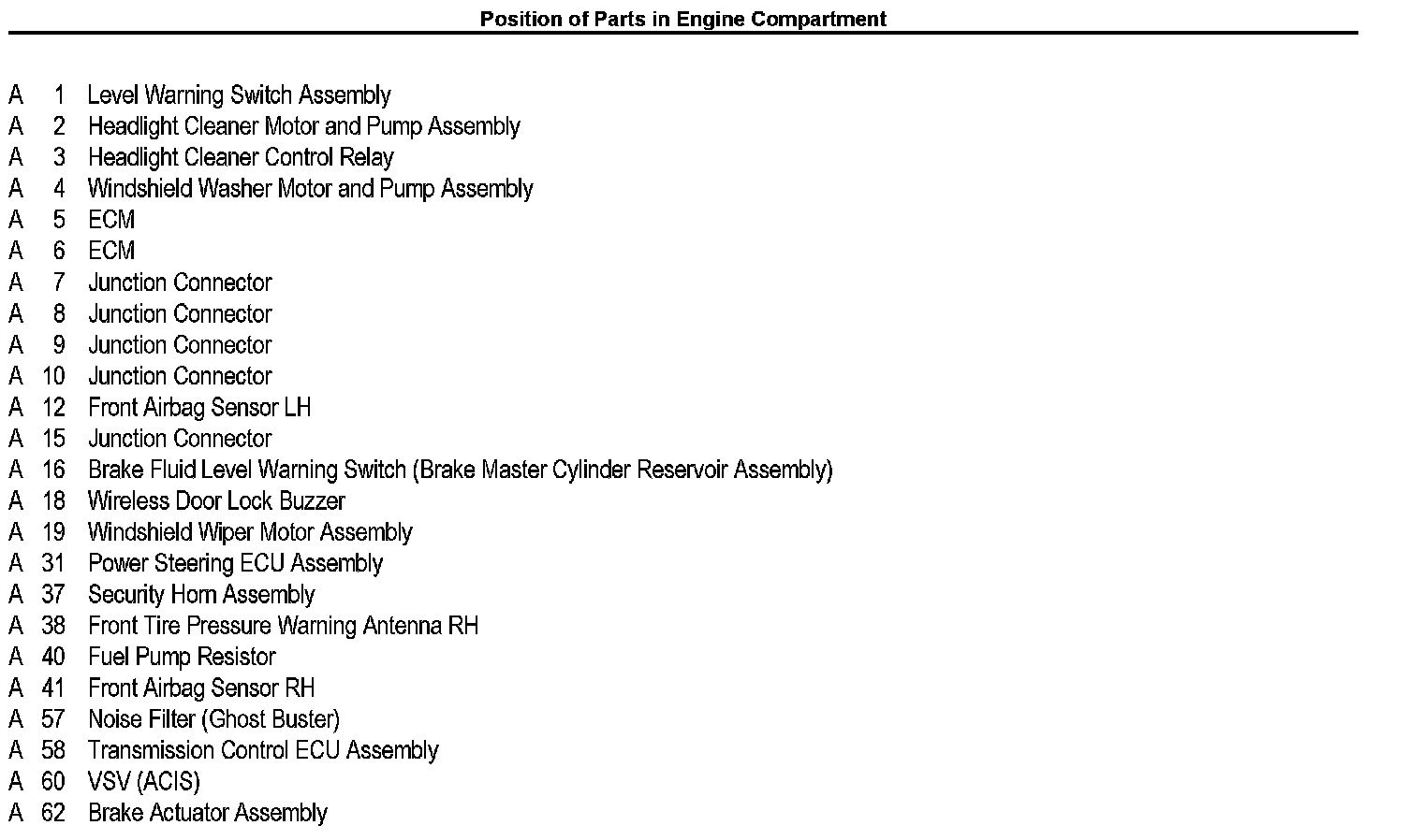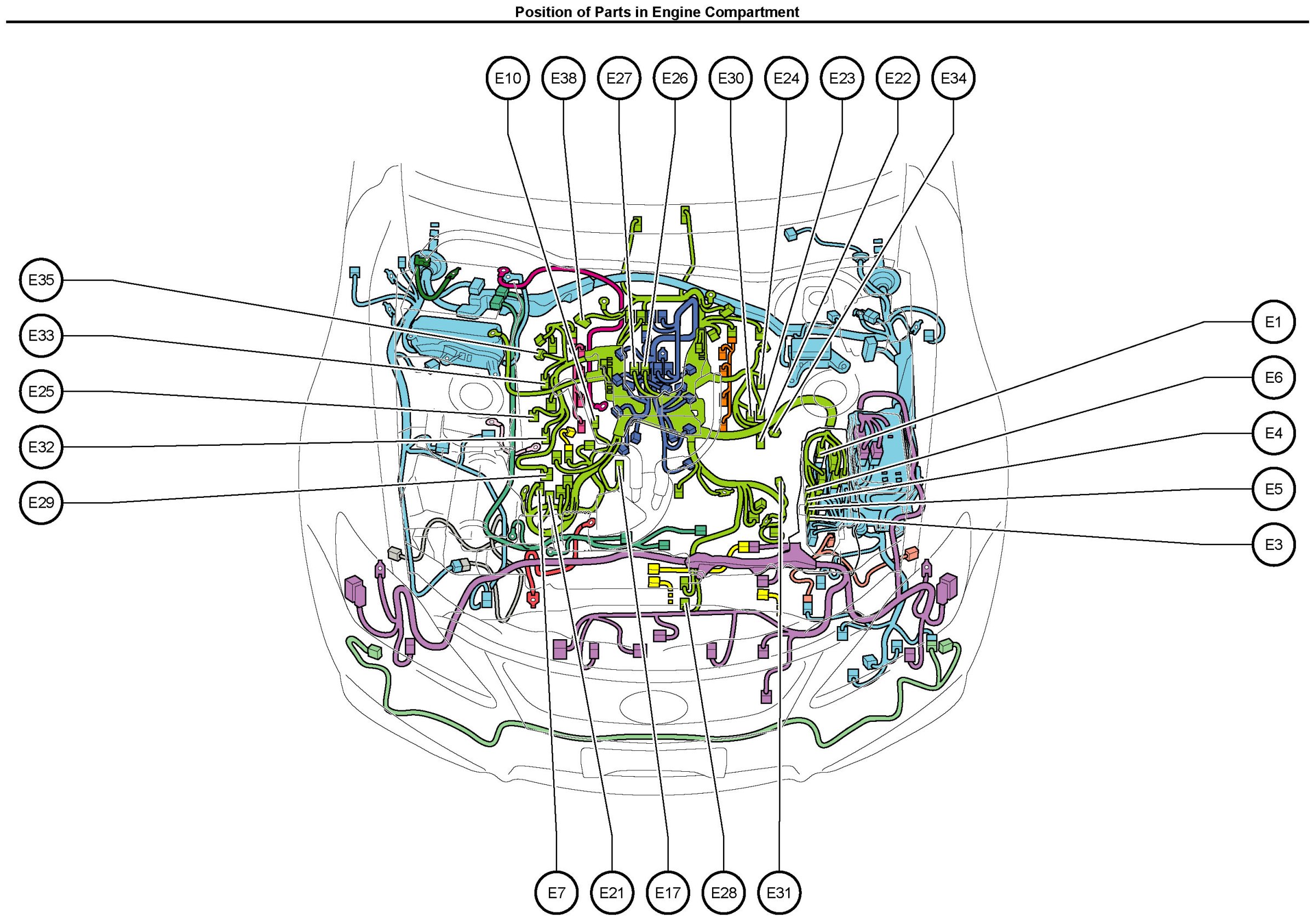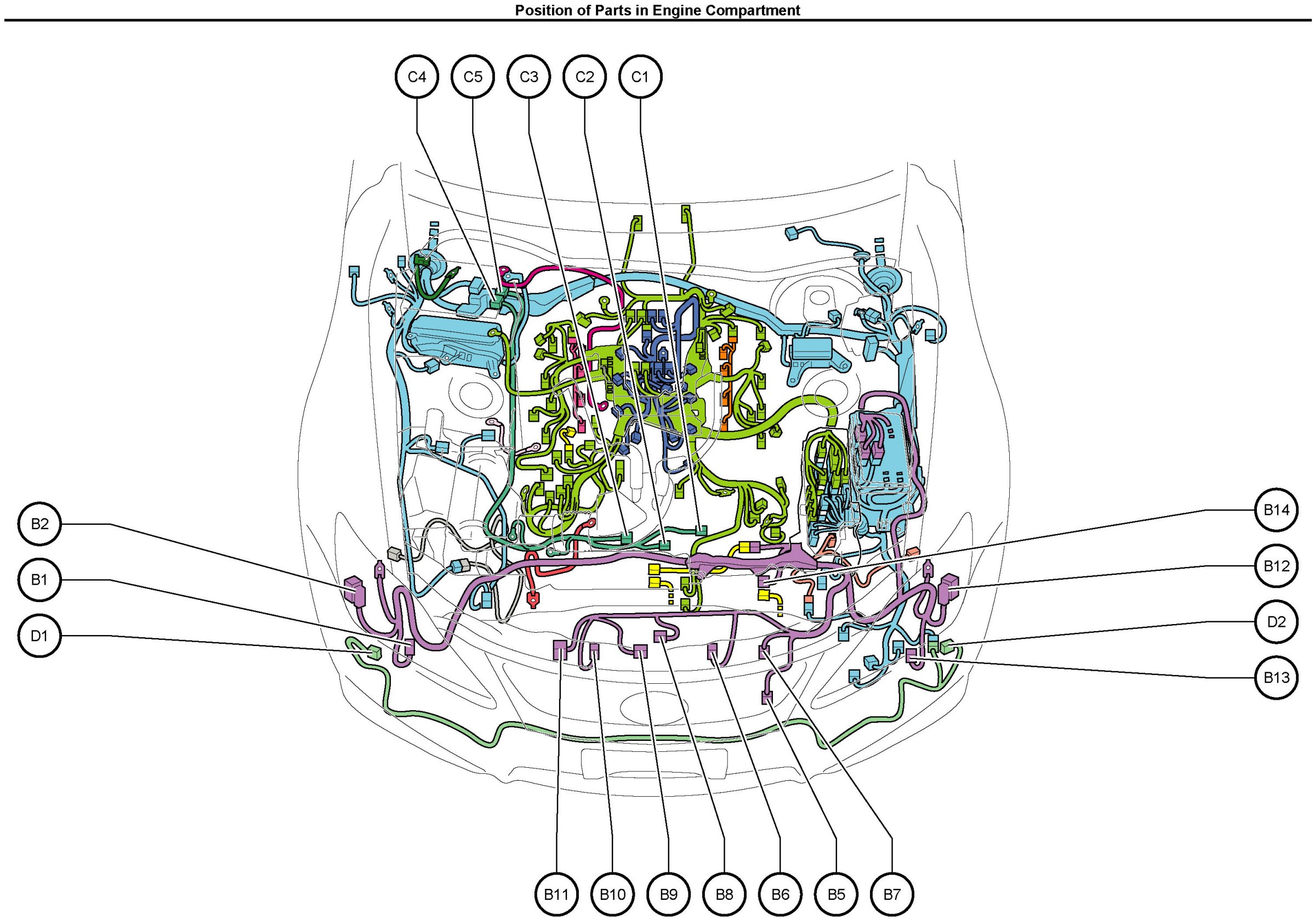 Position Of Parts In Engine Compartment: