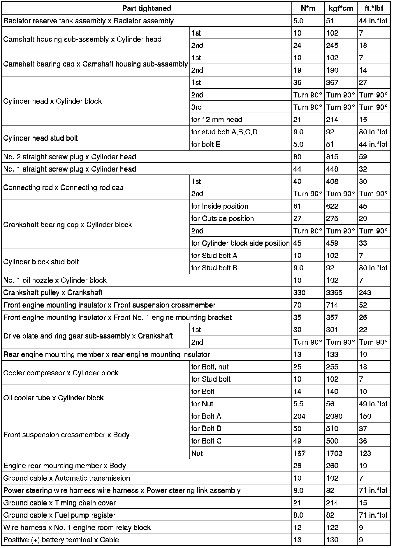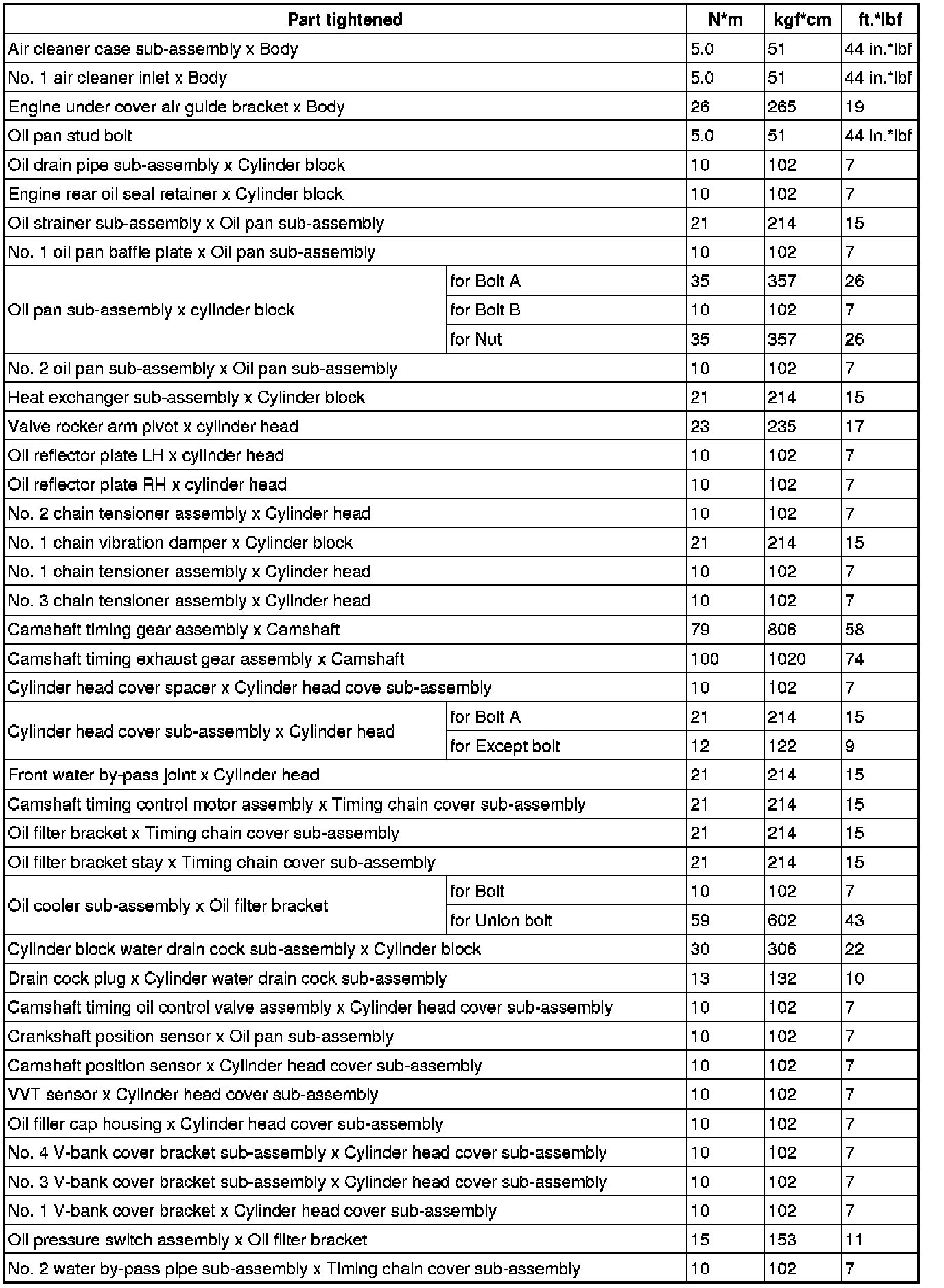 SPECIFICATIONS: 2UR-GSE ENGINE MECHANICAL: TORQUE SPECIFICATIONS