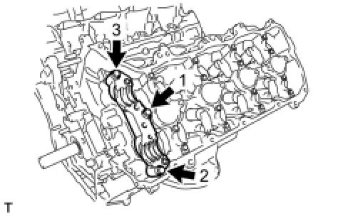 (2) Temporarily tighten the camshaft housing with the 3 bolts in the sequence shown in the illustration.