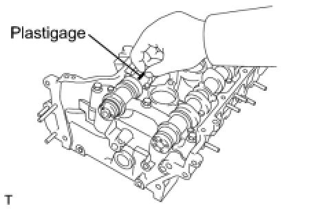 (e) Lay a strip of Plastigage across each of the camshaft journals.