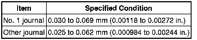 (j) If the oil clearance is greater than the maximum, replace the camshaft. If necessary, replace the cylinder head sub-assembly.