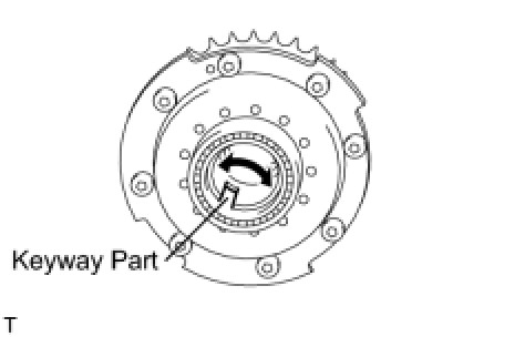 (b) Rotate the keyway part of the camshaft timing gear assembly's eccentric shaft by hand.