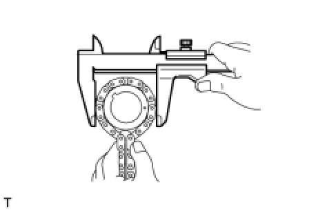 (b) Using a vernier caliper, measure the sprocket diameter with the No. 1 chain sub-assembly.