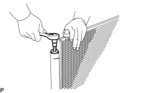 (c) Using a 14 mm straight hexagon wrench, install the cap to the cooler condenser core.