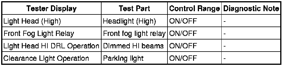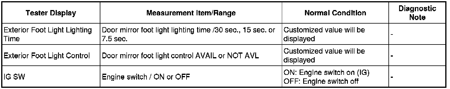 LIGHTING (EXT): LIGHTING SYSTEM: DATA LIST / ACTIVE TEST