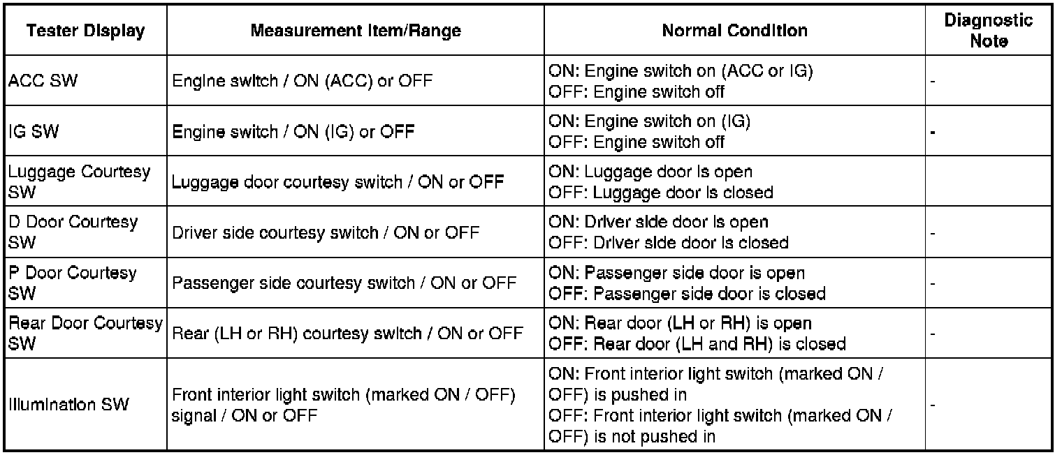 LIGHTING (INT): LIGHTING SYSTEM: DATA LIST / ACTIVE TEST
